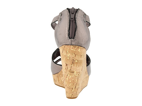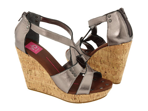 Pierce the night with wicked scandal in these wonderfully wild wedge sandals from DV by Dolce Vita?! Back-zip closure ensures effortless on/off. Metallic man-made upper with swooped strap detail and sleek stud accents. Man-made lining. Lightly cushioned man-made footbed. Cork platform and wedge heel. Durable rubber sole. 4" heel. 1" platform. 9.00 oz. Product measurements were taken using size 6. Please note that measurements may vary by size.