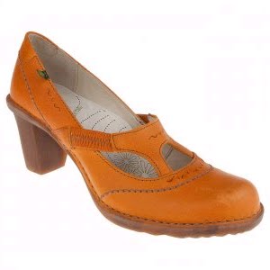 El Natura Lista - natural for our feet! The leather pumps DUNA El Naturalista offers our feet with the best comfort. The leather pumps come in a friendly orange broken by coarse stitching in beige. The front apron conjure a great Fu?dekolettè. Absolutely Natura Lista: The green frog logo on the side and on the soles make leather pumps DUNA unique!