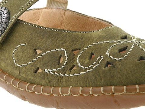 Leather upper with fun, feminine detail stitching and decorative hardware for a great look.
