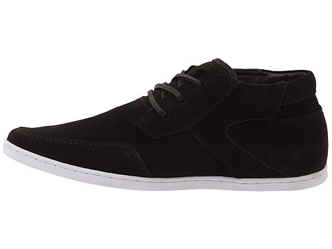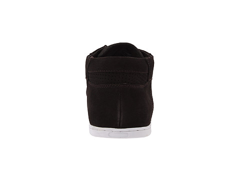 Suede or leather upper with contrasting stitch detail and perforation accent at heel cup.
